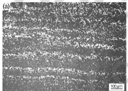 相關(guān)文獻指出,低中碳合金鋼中的帶狀組織是指沿鋼材軋制方向或鍛造方向形成的,以先共析鐵素體為主的帶與以珠光體為主的帶彼此堆疊而成的鑄態(tài)組織,是經(jīng)常出現(xiàn)在鋼材中的缺陷性組織。由于鋼液在鑄錠結(jié)晶過程中選擇性結(jié)晶形成化學成分呈不均勻分布的枝晶組織,鑄錠中的粗大枝晶在軋制或鍛造時沿變形方向被拉長,并逐漸與變形方向一致,從而形成碳及合金元素的貧化帶(實際上是條)和貧化帶彼此交替堆疊,在緩冷條件下,先在碳及合金元素貧化帶(過冷奧氏體穩(wěn)定性較低)析出先共析鐵素體,并將多余的碳排人兩側(cè)的富化帶,最終形成以鐵索體為主的帶:碳及合金元素富化帶,其過冷奧氏體穩(wěn)定性較高,在其后形成以珠光體為主的帶,因而形成了以鐵素體為主的帶與以珠光體為主的帶彼此交替的帶狀組織。