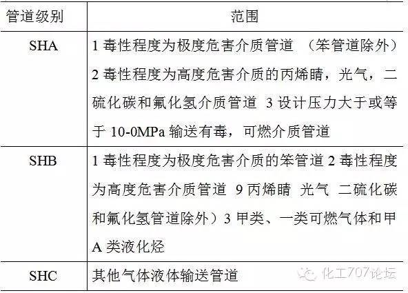 在石油化工裝置中,不同操作參數(shù)和輸送介質(zhì)性質(zhì)的的管道差別很大,其重要程度和危險性也不同,為更好的保證管道在運行過程中的可靠性和安全性,對重要程度不同的管道提出不同的設計、制造和施工要求。所以對管道分級是必要的。