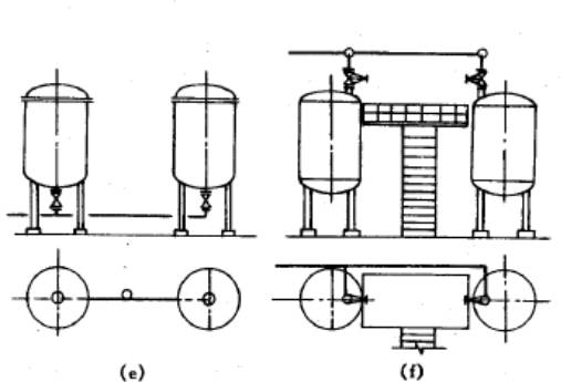 (e)容器直徑不大和底部離地(樓)面較高時,出料管從底部中心引出。這樣布置,其管道短,占地面積小。