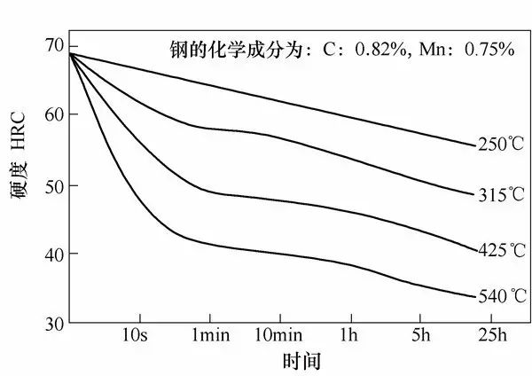 由圖1可以發現,無論是低溫、中溫、高溫回火,硬度的變化都是在極短時間內完成的,時間越長變化越緩慢,高溫快速回火正是根據這一現象提出的。