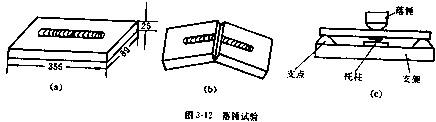 正方的試樣板上堆上一小段脆性焊道,在焊道上鋸一缺口。在試樣上方爆炸,根據(jù)試樣破壞情況判斷是否塑性破壞。
