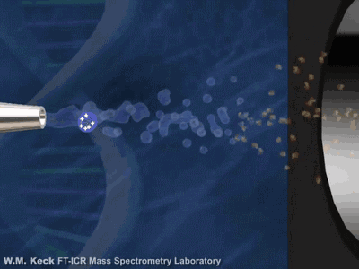 FT-ICR質譜的分析器是一個具有均勻(超導)磁場的空腔,離子在垂直于磁場的圓形軌道上作回旋運動,回旋頻率僅與磁場強度和離子的質荷比有關,因此可以分離不同質荷比的離子,并得到質荷比相關的圖譜。