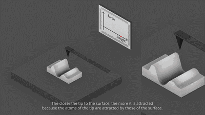 AFM的掃描模式有接觸模式和非接觸模式,接觸式利用原子之間的排斥力的變化而產生樣品表面輪廓;非接觸式利用原子之間的吸引力的變化而產生樣品表面輪廓。