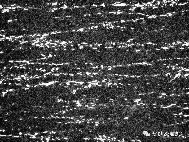 共晶碳化物呈網(wǎng)狀分布,按照GB/T14979-94《鋼的共晶碳化物不均勻度評定法》標(biāo)準(zhǔn)第四級別圖評定共晶碳化物不均勻度級別5級,見圖3。