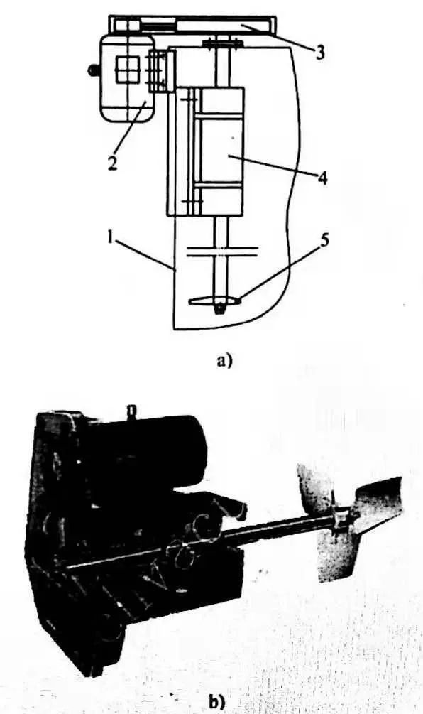 軸流式螺旋槳使液體沿攪拌軸方向流動,這種螺旋槳可采用頂插式、側插式安裝,如圖5所示。