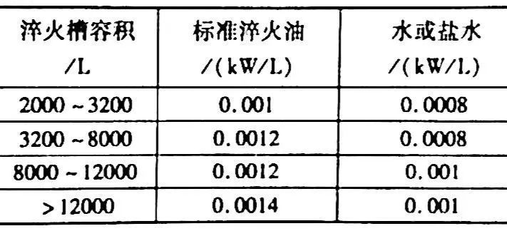 無攪拌淬火油槽,淬火件重量與油的體積比例一般為1:10 (t/m3);良好攪拌條件下的淬火油槽,上市比例可為1:5~8(t/m3)。