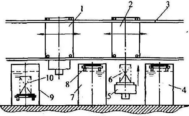 7-淬火槽Ⅱ  8-淬火槽升降臺