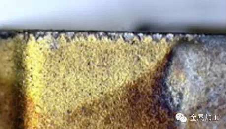 擴散磨損與磨料磨損共同作用造成了月牙洼。在加工基和鈦基合金時,工件切屑中的熱量會使硬質合金的成分溶解并擴散到切屑中,造成刀片頂部產生“月牙洼”。月牙洼最終會增大至足以使后刀面發生微崩、變形甚至可能導致快速的后刀面磨損。