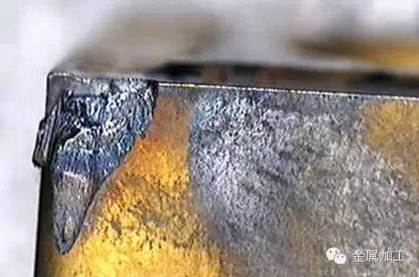 工件的碎片通過熱壓焊結到切削刃上時,會產生積屑瘤,這是切削區存在化學親和性、高壓及高溫所致。積屑瘤最終會脫落,有時隨刀片碎片一同脫落,從而導致微崩和快速的后刀面磨損。