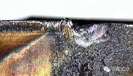 劇烈的溫度波動與機械沖擊可能造成熱機械失效。應力裂紋會沿刀片刃口形成,最終造成刀片的硬質合金部分脫落,看起來有點類似于微崩。
