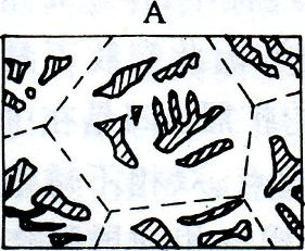 其所得雙相組織的類型(示意圖)
