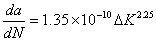 每次應力循環(huán)裂紋的擴展量
