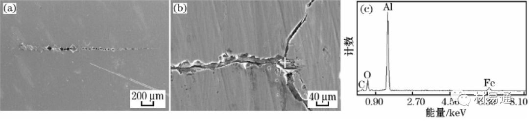 失效實(shí)例:供暖水管過(guò)早泄露,材質(zhì)為Q235B碳素結(jié)構(gòu)鋼。圖5(a)為泄露水管宏觀形貌,在泄露點(diǎn)附近水管表面已發(fā)生銹蝕。清除氧化腐蝕產(chǎn)物后,可以看到泄露點(diǎn)所在部位焊縫存在明顯溝槽,如圖5(b)所示。經(jīng)過(guò)對(duì)送檢泄露水管和原始水管進(jìn)行金相、夾雜物、能譜及模擬加速腐蝕試驗(yàn)等綜合分析后得出,焊縫部位存在與內(nèi)表面貫通的氧化物夾雜或復(fù)合氧化物夾雜是水管發(fā)生局部腐蝕、形成腐蝕溝槽并導(dǎo)致過(guò)早泄露的主要原因。在管內(nèi)含有O2、S、Cl 等腐蝕性介質(zhì)作用下,非金屬夾雜將和與之毗鄰的金屬鐵構(gòu)成腐蝕電池發(fā)生電化學(xué)腐蝕導(dǎo)致最終水管泄露。