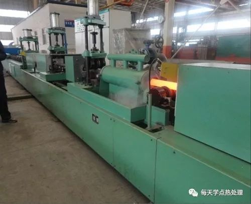 注:管材從右側進入,加熱奧氏體化后經過淬冷、輸出、回火。隨后被送到加工機床冷卻。