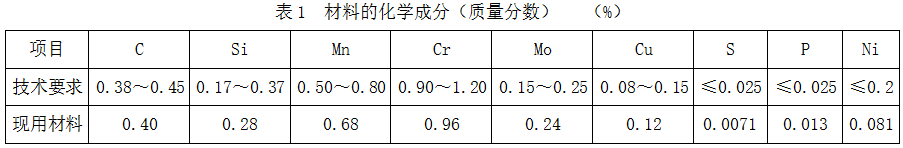 試驗原材料是國內某鋼廠生產的φ40mm雙真空冶煉鋼棒料,該材料經復驗后得到的化學成分如表1所示。