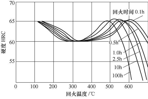 圖1 淬火鋼的回火溫度及時間對硬度的影響