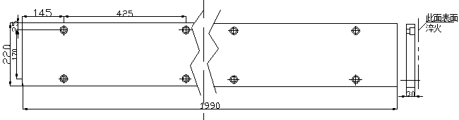我廠所生產擺剪的一鋼型零件,稱為滑板,如圖1所示。材料為36NiCrMo4,其對應的國內材料為40CrNiMoA,外形尺寸為1990mm×220mm×30mm,給利用熱處理表淬工藝解決變形帶來了較大的難度。