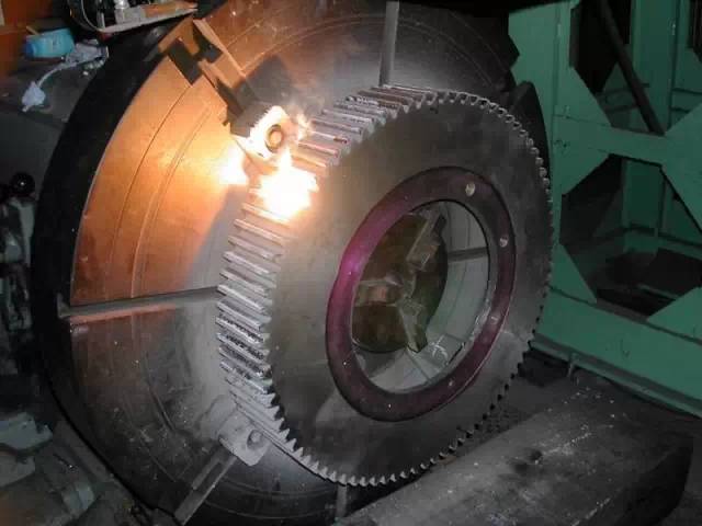 作為一種新型的表面強(qiáng)化技術(shù),齒輪激光熱處理克服了傳統(tǒng)熱處理的缺點(diǎn),獲得了理想的硬度和硬化層分布,耐磨性大幅度提高,使用壽命延長(zhǎng),淬火畸變微小,齒輪精度等級(jí)不受影響,齒面不需要研磨,可以代替滲碳、滲氮等表面化學(xué)熱處理和感應(yīng)熱處理等傳統(tǒng)工藝,生產(chǎn)成本低,生產(chǎn)效率高,目前已經(jīng)廣泛應(yīng)用于船舶、風(fēng)能發(fā)電、冶金、礦山及工程車輛等多種行業(yè)各類齒輪的表面硬化處理,尤其適合大型和特種齒輪的熱處理,最大直徑達(dá)3m以上。