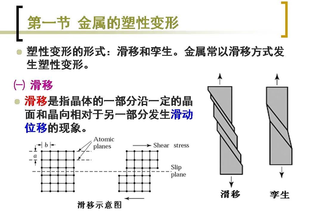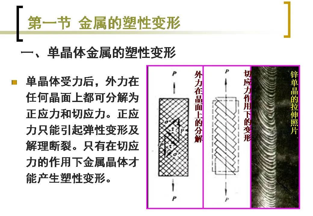 因?yàn)橥ㄟ^壓力加工時(shí)的塑性變形,金屬的組織也會(huì)發(fā)生很大的變化,可使某些性能如強(qiáng)度等得到顯著的提高。但在塑性變形的同時(shí),也會(huì)給金屬的組織和性能帶來某些不利的影響,因此在壓力加工之后或在其加工的過程中,還應(yīng)經(jīng)常對(duì)金屬進(jìn)行加熱,使其發(fā)生回復(fù)與再結(jié)晶,以消除不利的影響。工程上實(shí)際材料均為多晶體組織,為了更好地了解多晶體材料的變形,首先了解單晶體的變形特性。引用自:金屬材料的變形與再結(jié)晶。