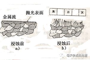 從而得到光亮如鏡的試樣表面。這個(gè)表面在顯微鏡下只能看到白亮的一片而看不到其組織細(xì)節(jié),因此必須采用合適的浸蝕劑對(duì)試樣的表面進(jìn)行浸蝕,使試樣表面有選擇性地溶解掉某些部分(如晶界),從而呈現(xiàn)微小的凹凸不平(圖1-1),這些凹凸不平在光學(xué)顯微鏡的景深范圍內(nèi)可以顯示出式樣的組織形貌、大小和分布。