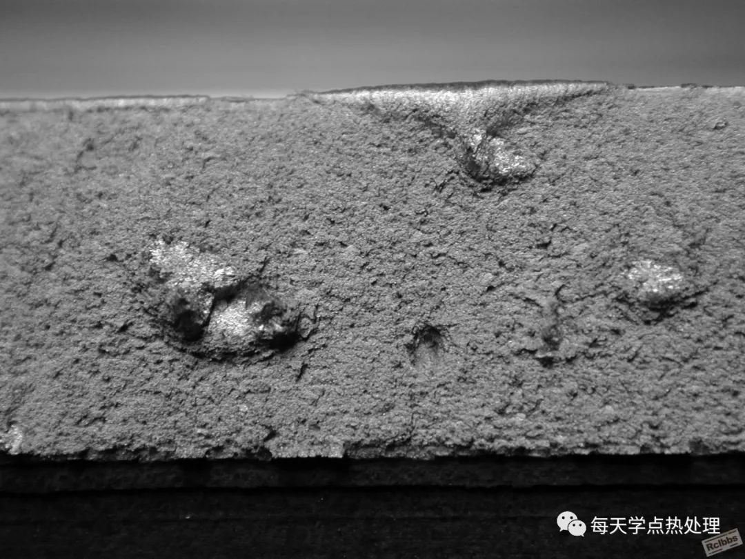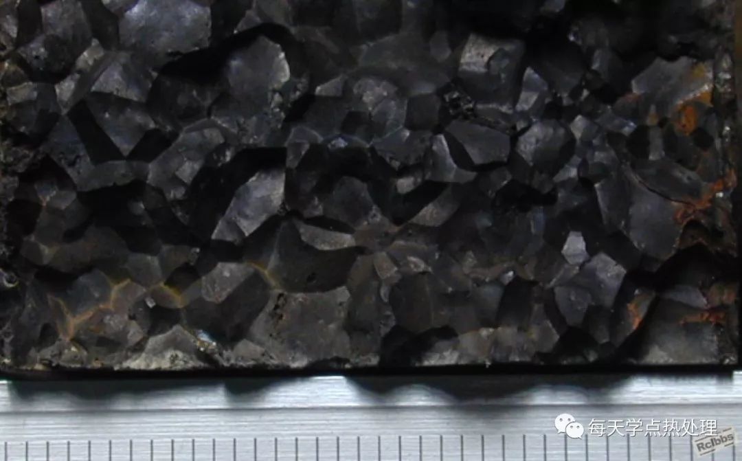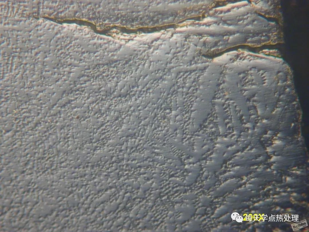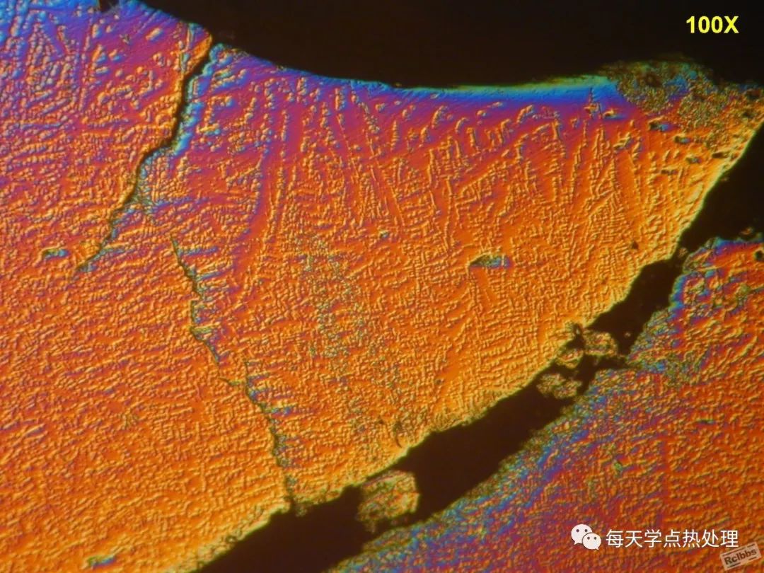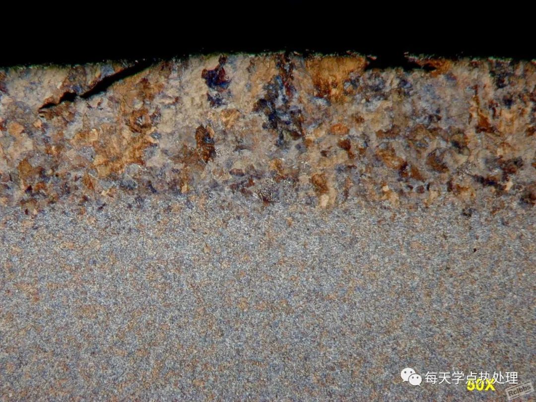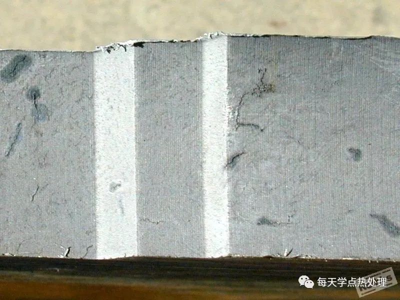 斷口上無脫碳層,有氧化色,說明是縱裂是在冷卻過程中發(fā)生的。