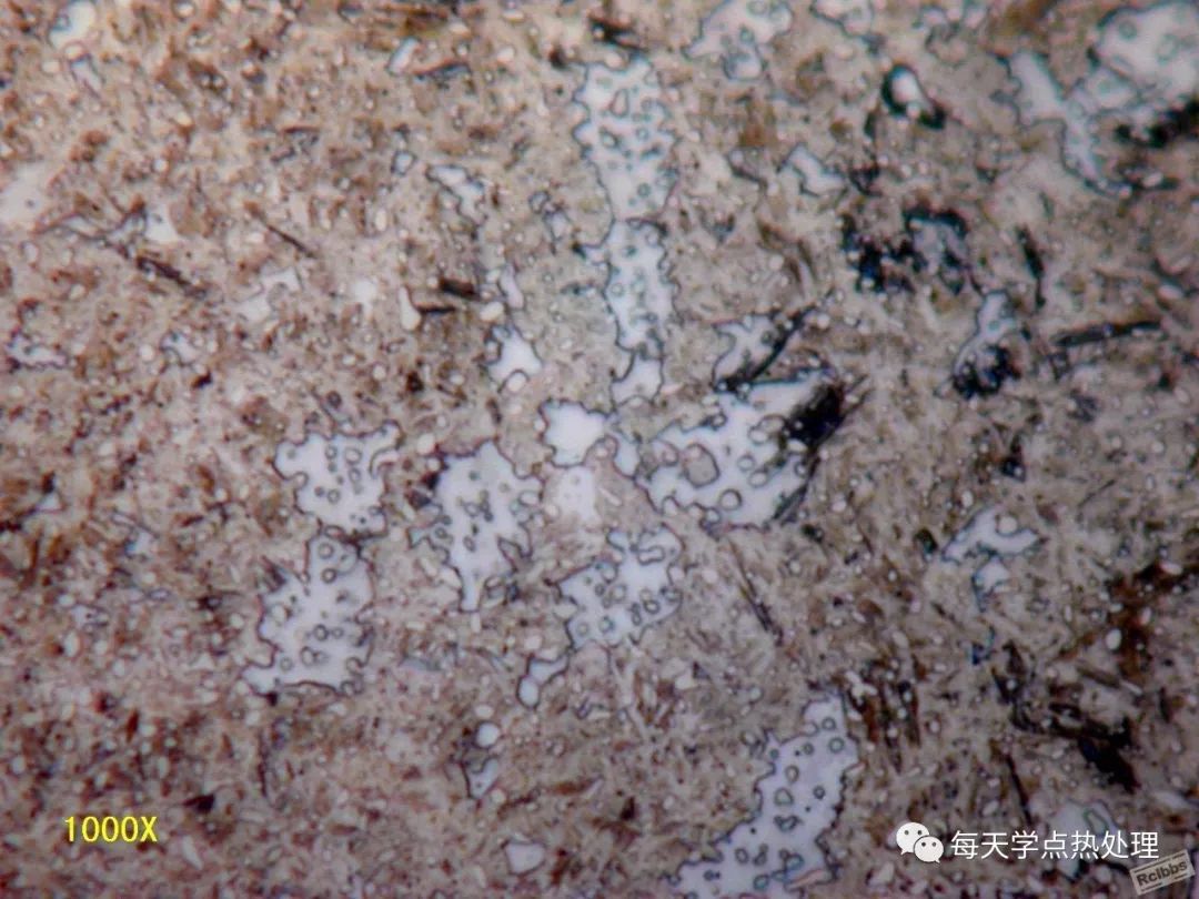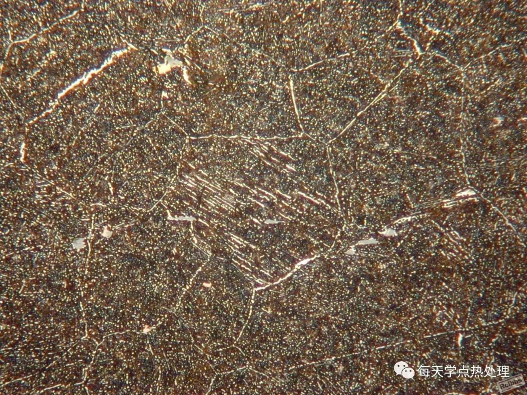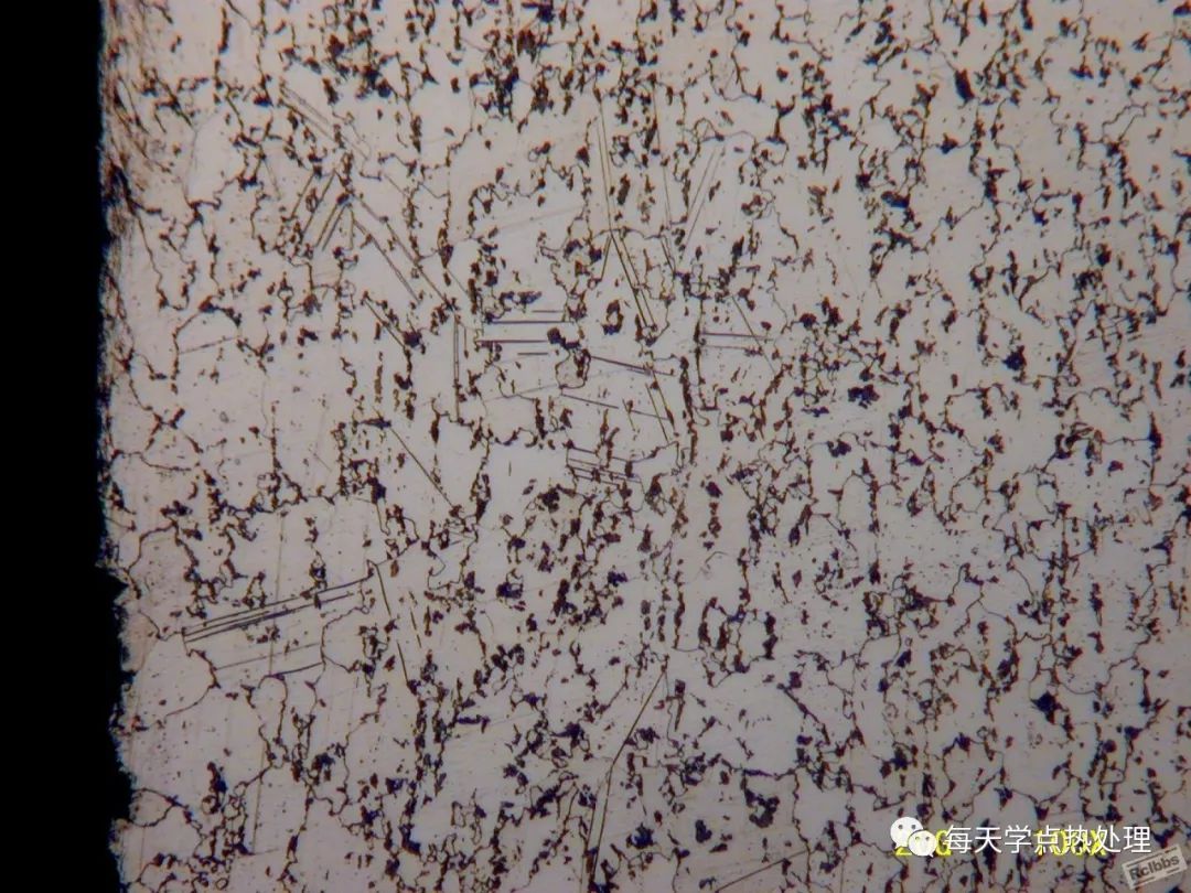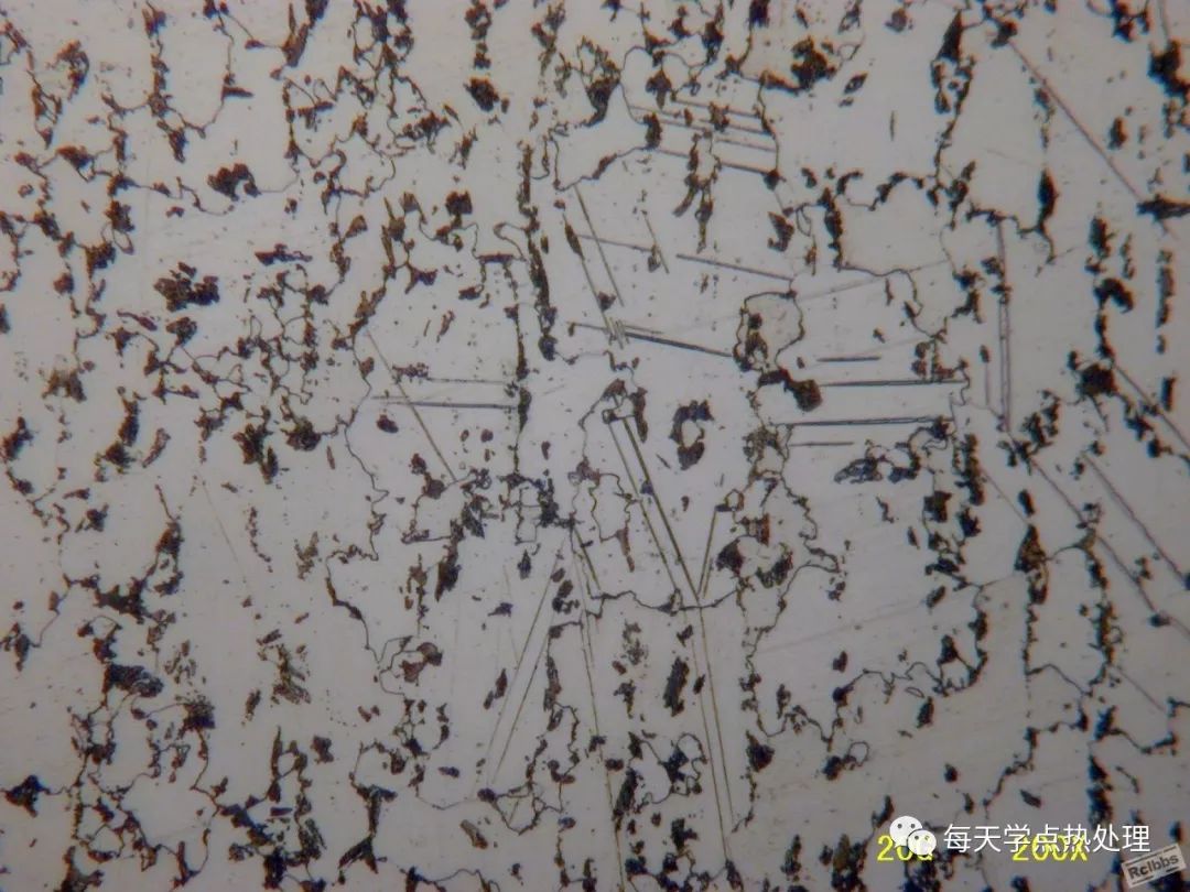 但5級圖仍存在聚集的小球,片為帶有棱角的條狀,這屬于欠熱未溶的片,而不是從奧氏體中析出的片。