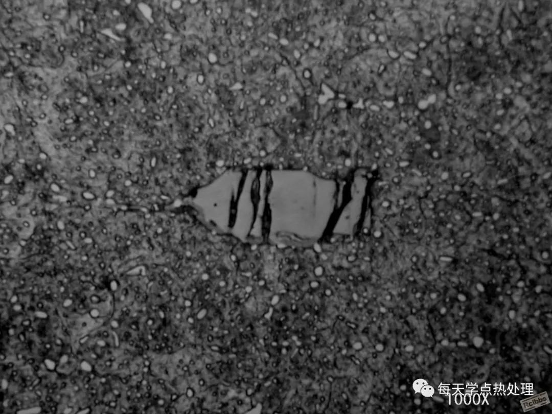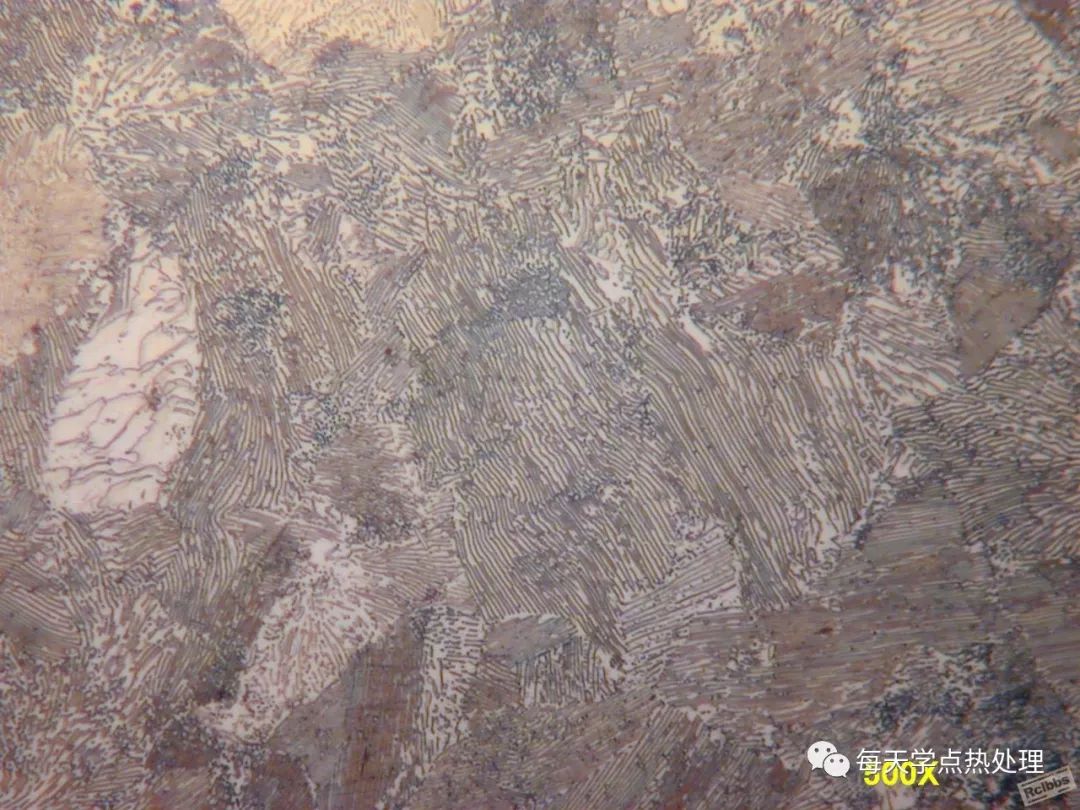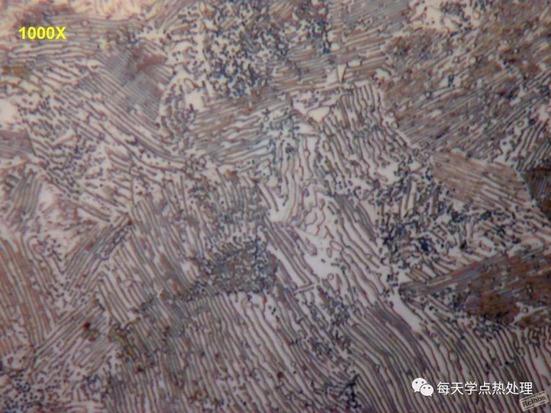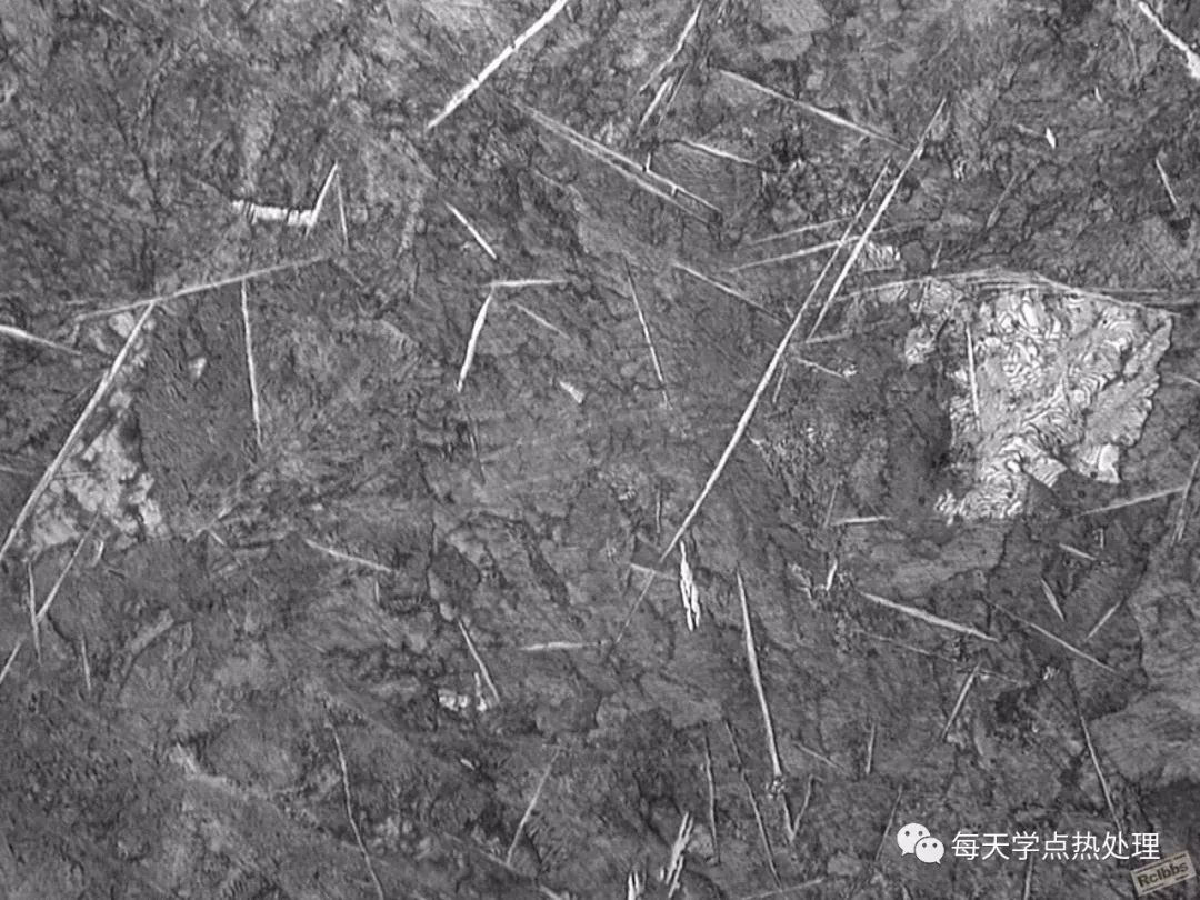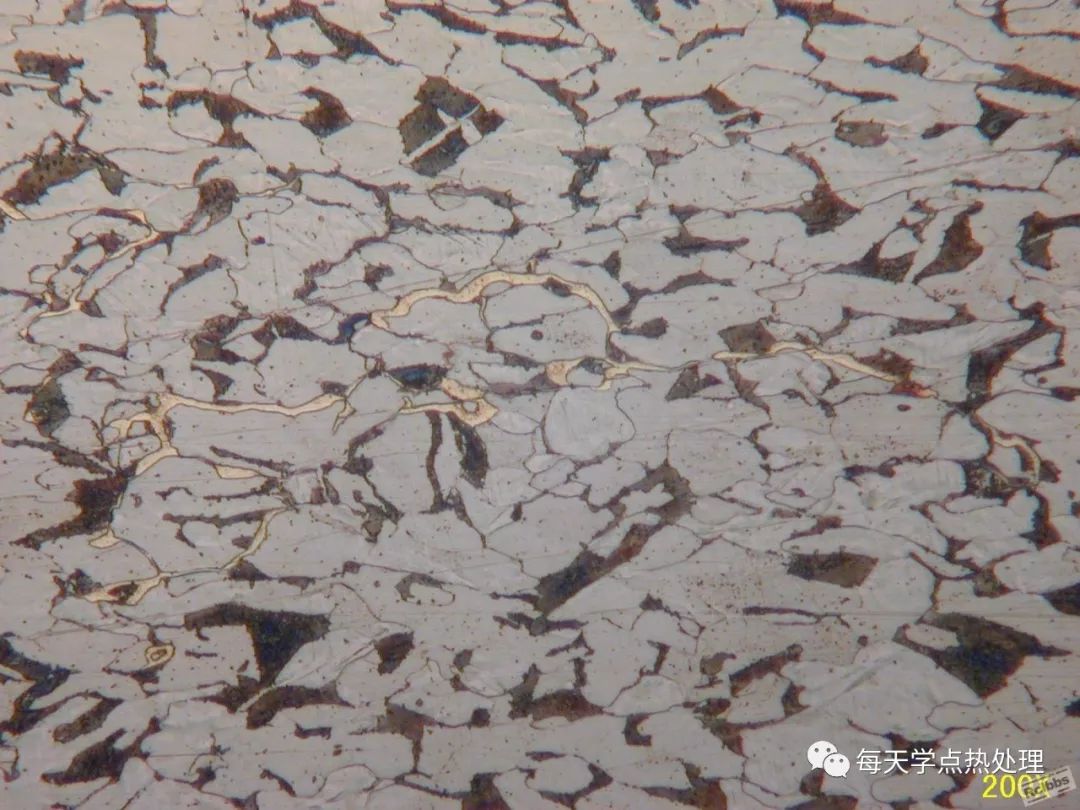 但5級圖仍存在聚集的小球,片為帶有棱角的條狀,這屬于欠熱未溶的片,而不是從奧氏體中析出的片。