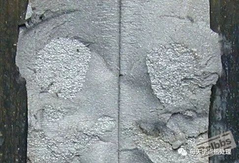 11、40Cr鍛件,經(jīng)過正火后發(fā)現(xiàn)縱裂,裂縫打開后發(fā)現(xiàn)是石狀斷口