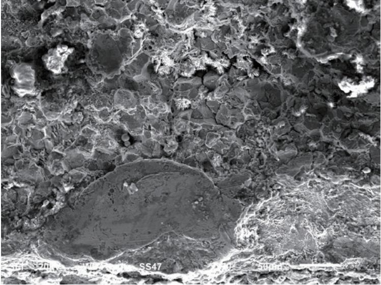 將螺栓斷口清洗后置于掃描電子顯微鏡下觀察: