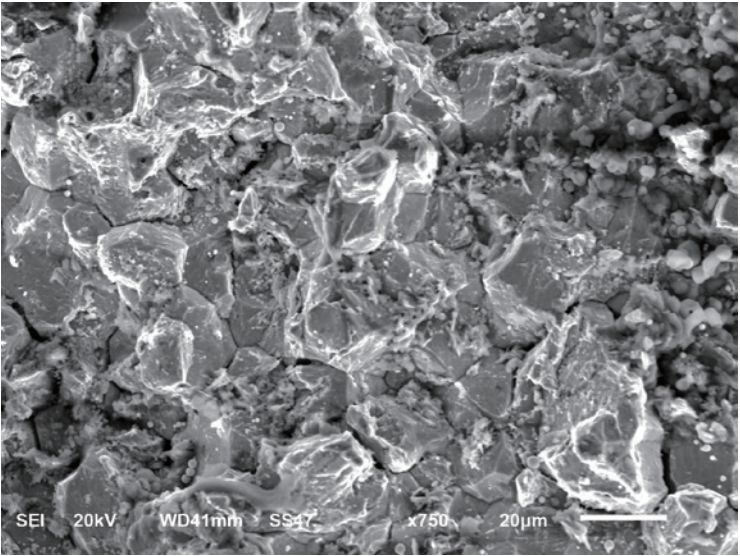 螺栓斷口呈沿晶斷裂特征,晶面上可見雞爪紋、微小孔洞痕跡,呈氫致脆性開裂特征。