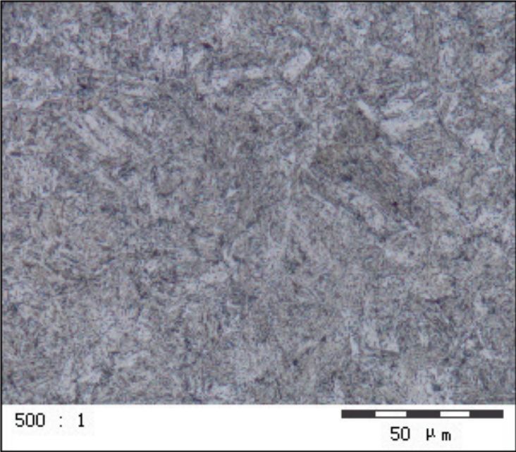 從裂源及螺栓心部取縱截面試樣,按GB/T13298—2015進行制樣,隨后在光學(xué)顯微鏡下觀察,結(jié)果如下:根據(jù)GB/T10561—2005/ISO 4967:1998(E)中的實際檢驗A法和ISO評級圖進行評定:螺栓心部的非金屬夾雜物級別評為A0、B0、C0.5、D0.5,材料純凈度較好(見圖9)。螺栓心部顯微組織為回火索氏體+鐵素體,屬正常組織(見圖10)。