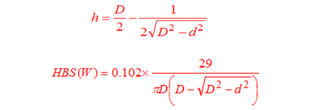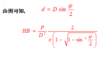 在實(shí)際實(shí)驗(yàn)時(shí),由于測(cè)量壓痕直徑d比h方便,因此將上式h換算成d的表達(dá)式。