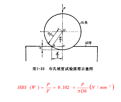 式中,HBS、HBW分別代表用鋼球和金剛石壓頭測(cè)得的硬度,d是唯一變量,試驗(yàn)是只要測(cè)出壓痕直徑d(mm),可通過計(jì)算,或查布氏硬度表即可得到HB值。