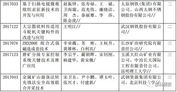 2017年冶金科學技術獎推薦獲獎項目(82 項)