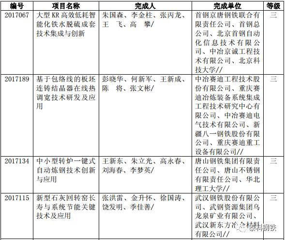 近日,冶金科學技術獎獎勵委員會辦公室公布了2017年中國鋼鐵工業協會、中國金屬學會冶金科學技術獎(簡稱冶金科學技術獎)推薦獲獎項目名單,并將獲獎項目的名稱、完成單位、完成人、推薦等級等向社會公告。根據專業評審結果,2017年共推薦獲獎項目82項,其中:特等獎3項,一等獎14項,二等獎22項,三等獎43項。冶金科學技術獎是中國冶金行業最高科學技術獎,恭喜各獲獎單位和技術大拿們,趕緊來看看都有誰獲獎了吧!