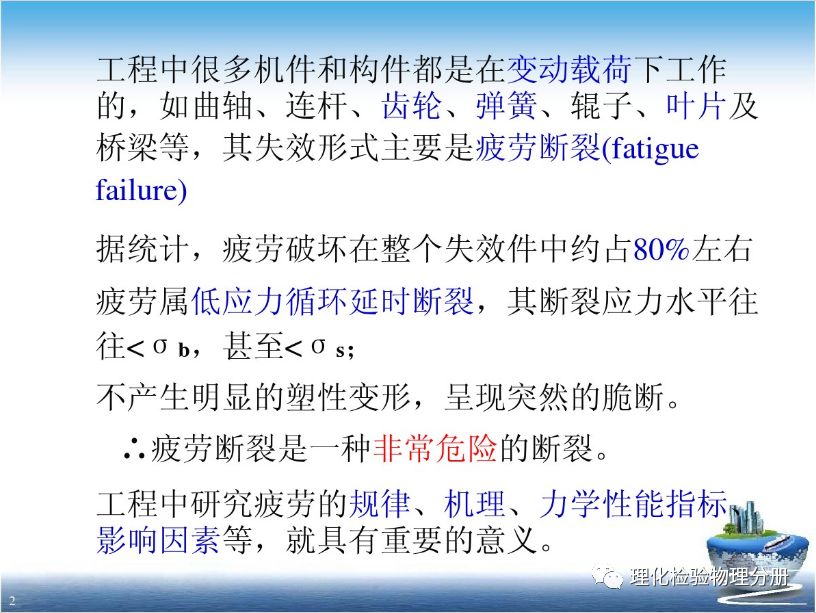 金屬疲勞是指材料、零構件循環應力或循環應變作用下.在一處或幾處逐漸產生局部永久性累積損傷,經一定循環次數后產生裂紋或突然發生完全斷裂的過程。引 當材料和結構受到多次重復變化的載荷作用后,應力值雖然始終沒有超過材料的強度極限,甚至比彈性極限還低的情況下就可能發生破壞,這種在交變載荷重復作用下材料和結構的破壞現象,就叫做金屬的疲勞破壞。