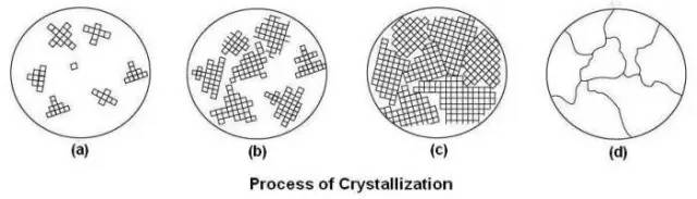 高溫的液態金屬冷卻轉變為固態金屬的過程,是一個結晶過程態,即原子由不規則態(液態)過渡到規則狀態(固態)的過程。結晶過程總是從晶核開始,晶核通常是依附于液態金屬中固態微粒雜質而形成,液體中原子不斷向晶核聚集,使晶核長大;同時液體中又不斷產生新的晶粒,并不斷長大,直至所有的晶粒長大到互接觸,結晶即告結束。