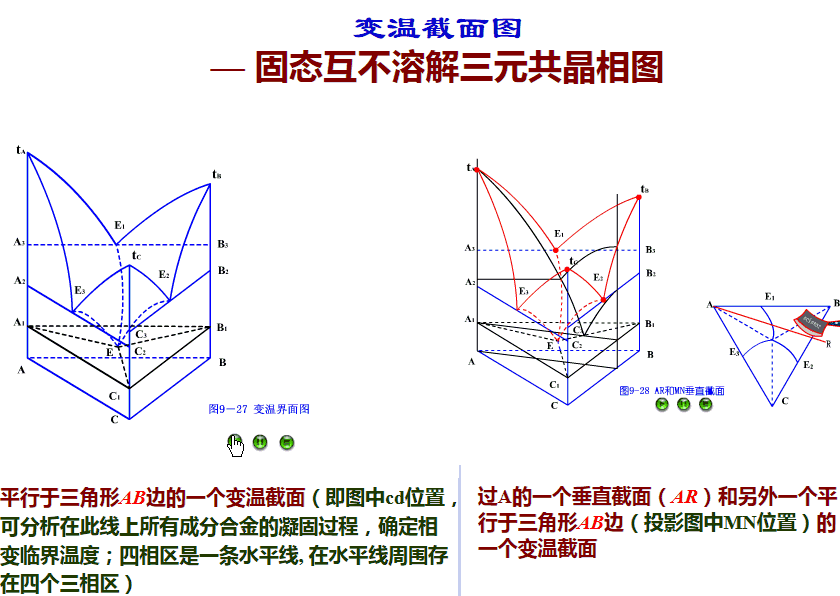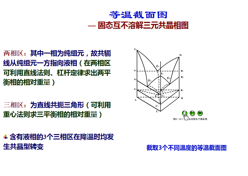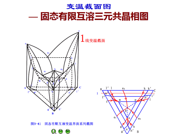 三元相圖比較難,相圖中的三個組元兩兩之間都可以形成共晶化合物,且該化合物與純組元之間有一定的互溶度。
