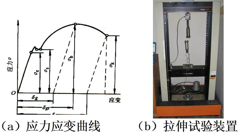 在材料的拉伸應力-應變圖中,橫坐標和縱坐標分別為材料的應變ε(strain)應力和σ(stress) 。