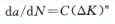 式中da/dN%26mdash;%26mdash;裂紋擴展速率,mm/周;△K%26mdash;%26mdash;應力強度因子幅度(MPa%26bull;m1/2),C,n%26mdash;%26mdash;可通過試驗確定的材料常數。