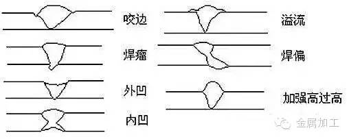 焊波粗、外形高低不平、焊縫加強高度過低或過高、焊波寬度不一及