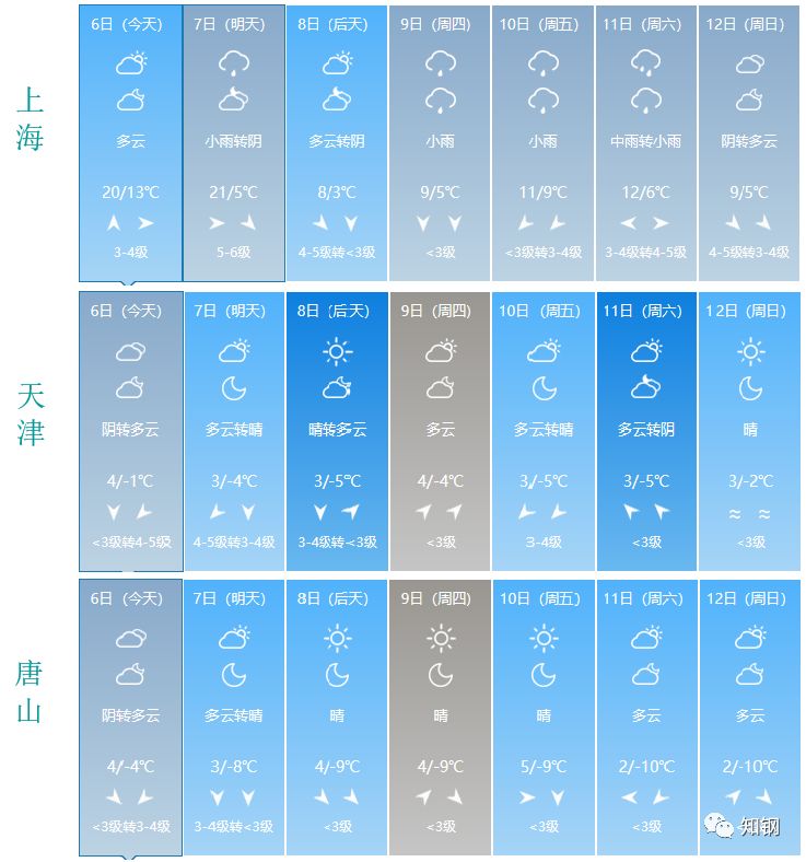 冬季北方和南方的溫差大,以2020年1月6日為例,南北氣溫相差15度左右。