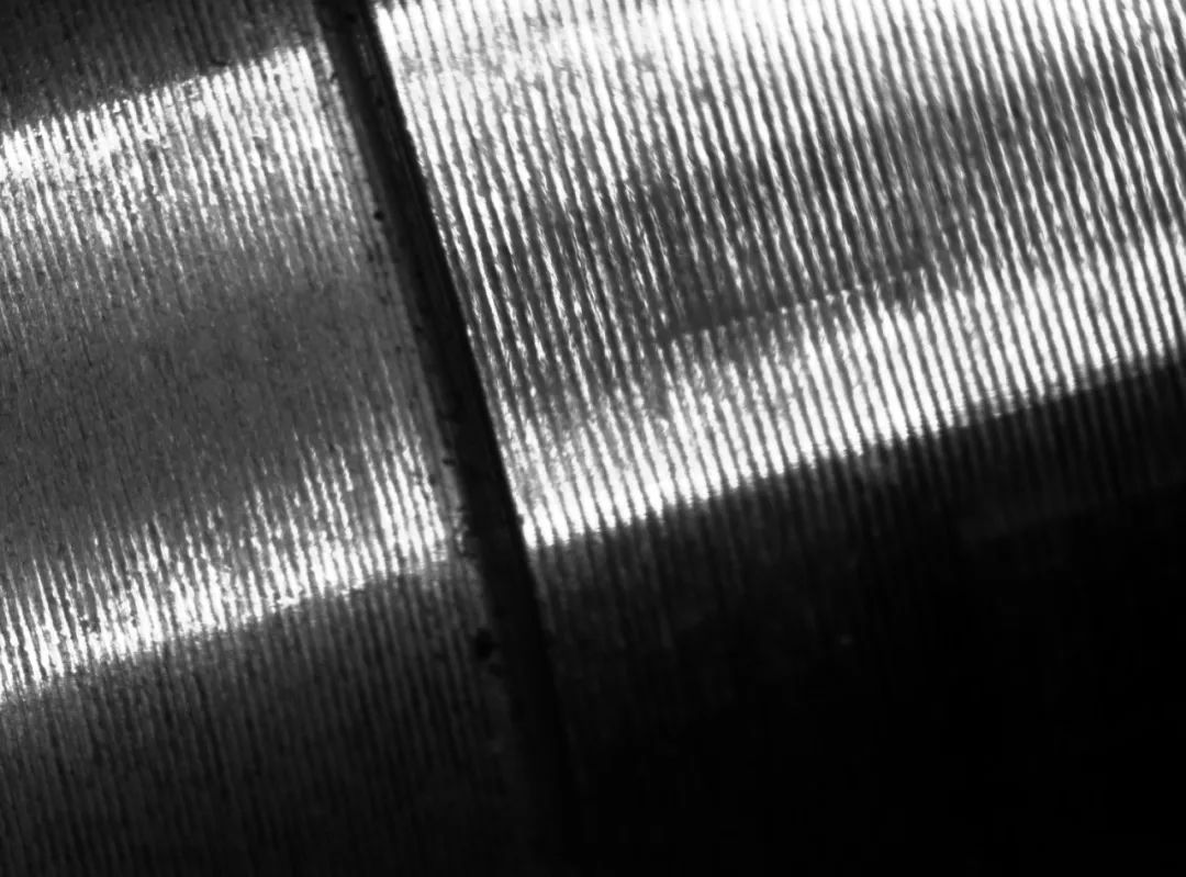 某廠在精車齒輪軸的光軸部位時表面出現軸向裂紋缺陷,裂紋沿軸向分布,數量不一,細而直,長度從1~6mm不等。出現裂紋后,在加工面上繼續車1mm后,又出現新的裂紋,裂紋具體形貌見圖1。