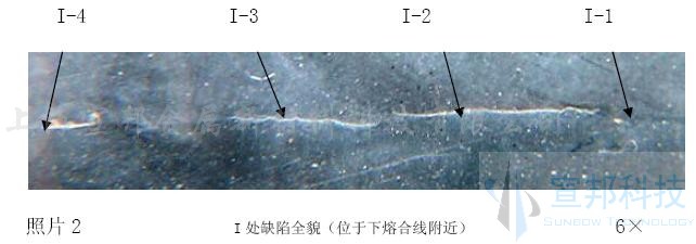 照片3 缺陷1全貌(位于下熔合線附近) ~6.5×