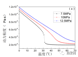 根據(jù)公式(3),提高冷卻流體的密度和流速,可以加大對流傳熱效率,而從圖2已經(jīng)發(fā)現(xiàn),CO2超臨界流體的密度可隨壓強和溫度的變化進行大幅度調(diào)節(jié),從而實現(xiàn)冷卻特性快速、均勻、有效的轉(zhuǎn)換。