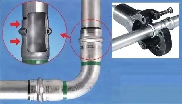 清理插入口、標(biāo)注插入深度。按規(guī)定深度插入管子,保持軸線垂直。使用專用卡壓工具卡壓接頭,卡壓后用量規(guī)檢查卡壓尺寸是否到位。