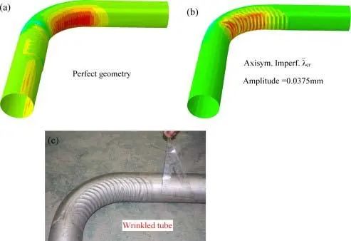 可能很多人誤認為彎頭變形是溫度熱脹引發的,溫度引發的就是二次應力,二次應力就得按安定性原則來控制,這是錯誤的。管道熱脹對折角彎頭或弧管有兩個破壞作用,一個是引發弧管失穩,產生褶皺;另外一個就是如果不發生失穩,冷熱循環導致二次應力,對彎管或彎頭產生疲勞破壞。一個原因,引發兩個不同的結果。不允許發生失穩,也不允許二次應力超標產生疲勞破壞。