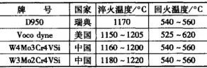 各國粉末高速鋼根據牌號不同,其熱處理規范也不同。瑞典的四種牌號粉末高速鋼的淬火溫度均設為1160℃~1180℃。美國粉末高速鋼CPM Rex42的淬火溫度采用1230℃,CPM Rex20采用1190℃。奧地利的粉末高速鋼S390PM淬火溫度采用1150℃~1240℃。日本的幾種牌號高速鋼的熱處理規范見表8 。
