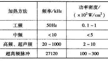 ▼表1 感應加熱頻段的頻率范圍和加熱功率密度