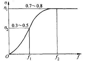 (1)對于一定尺寸的工件和感應器來說,所選擇的電流頻率不應低于某一數值f1,否則工件只能加熱到失磁點左右的溫度,見圖9 。